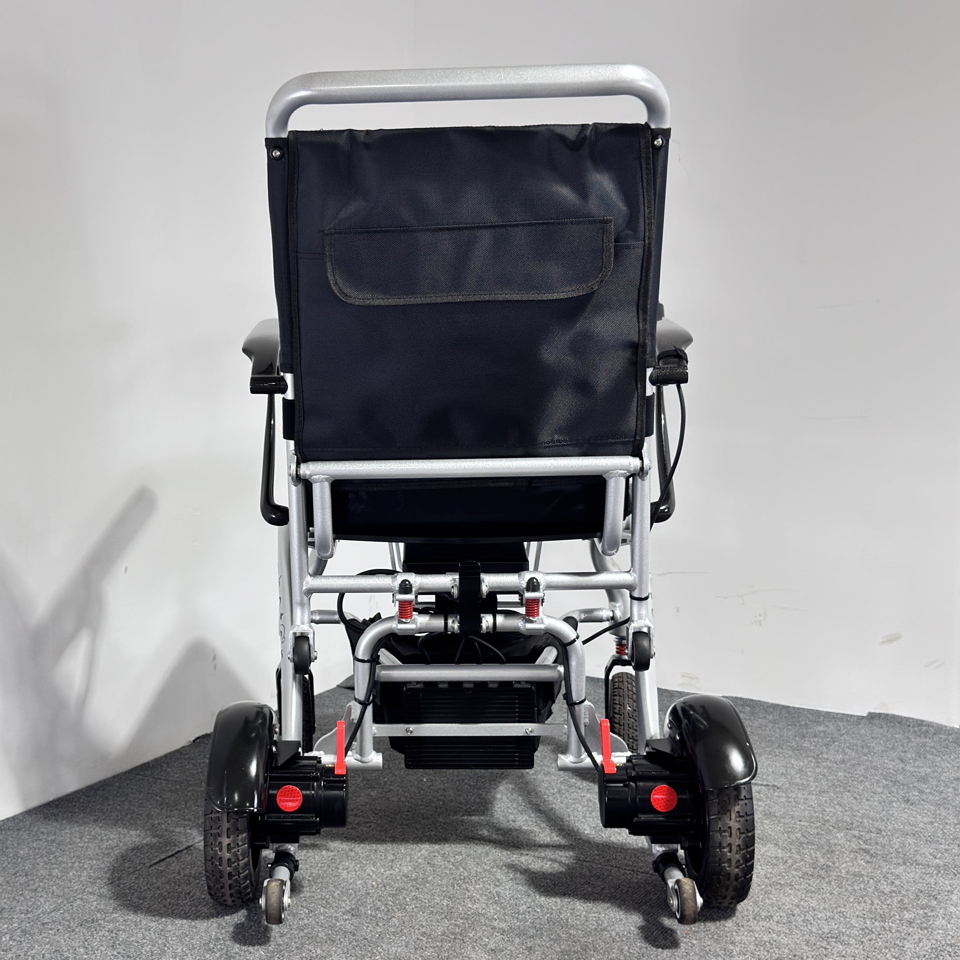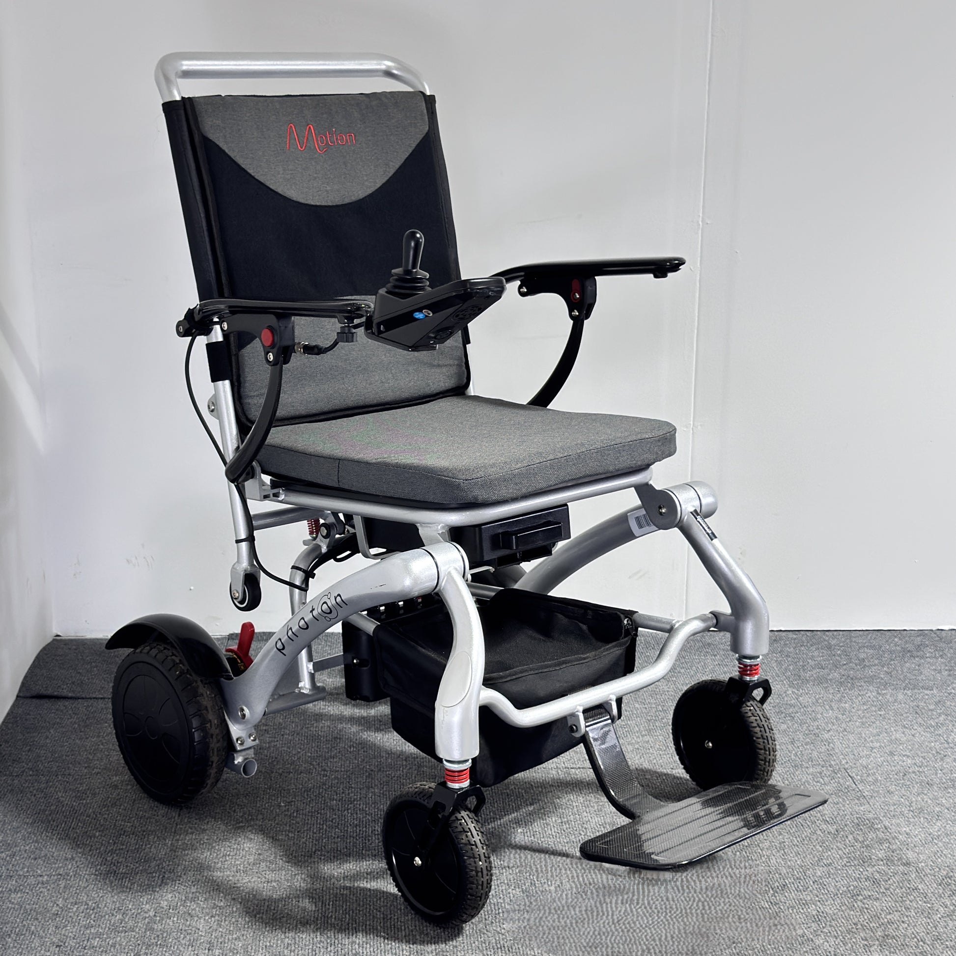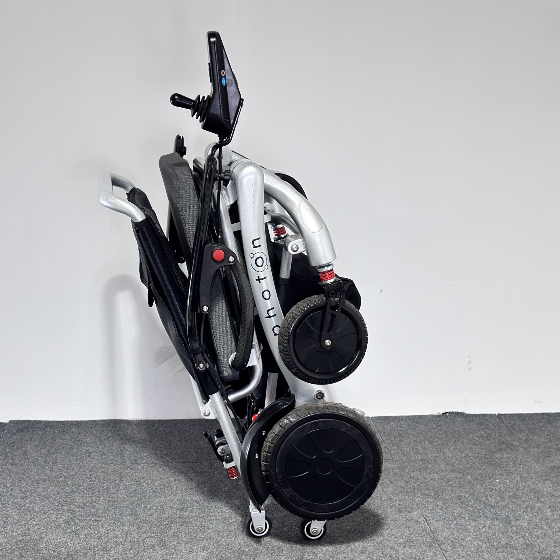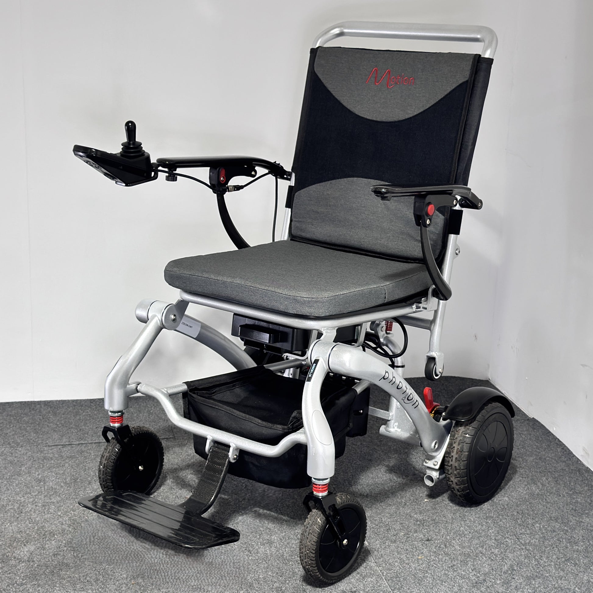 When not in use or while travelling, the powerchair can be folded down to a compact size. Thanks to its ultra‑lightweight design, it can then be easily lifted and placed into a car boot for convenient transport.