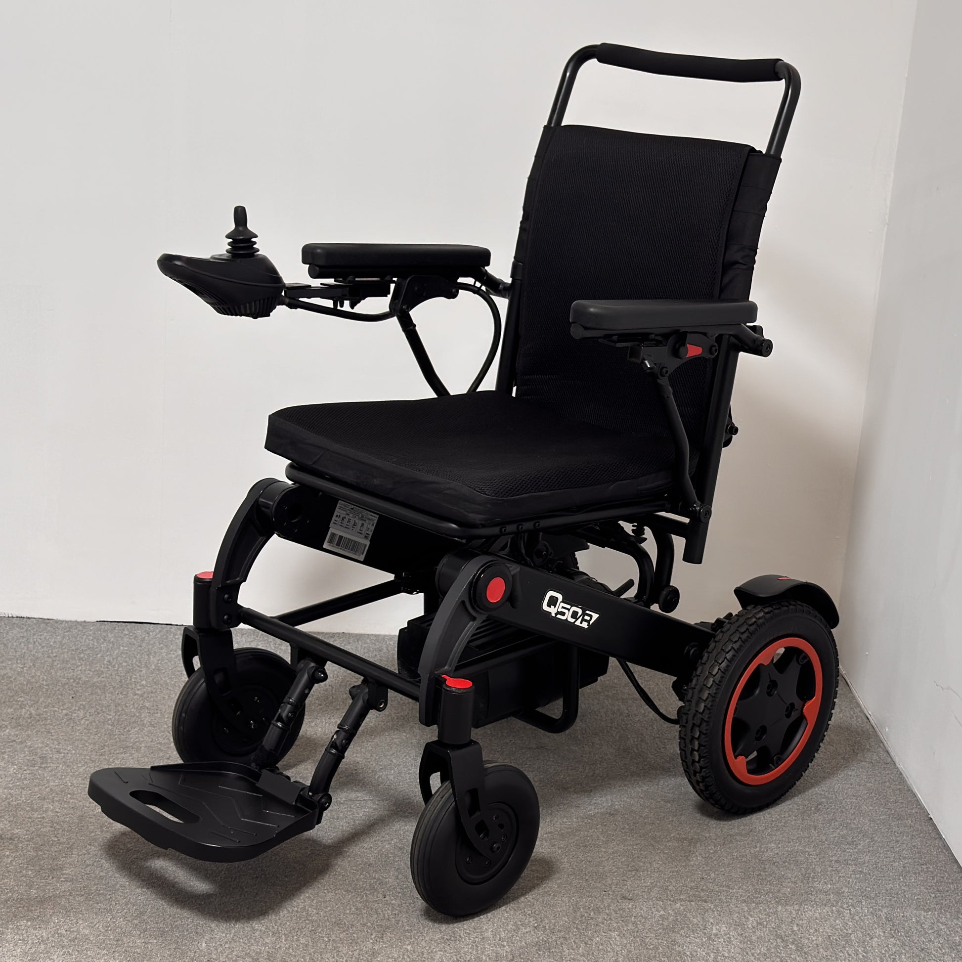 The preloved Q50R standard folding powerchair is designed for convenience with an impressive battery range — perfect for exploration!